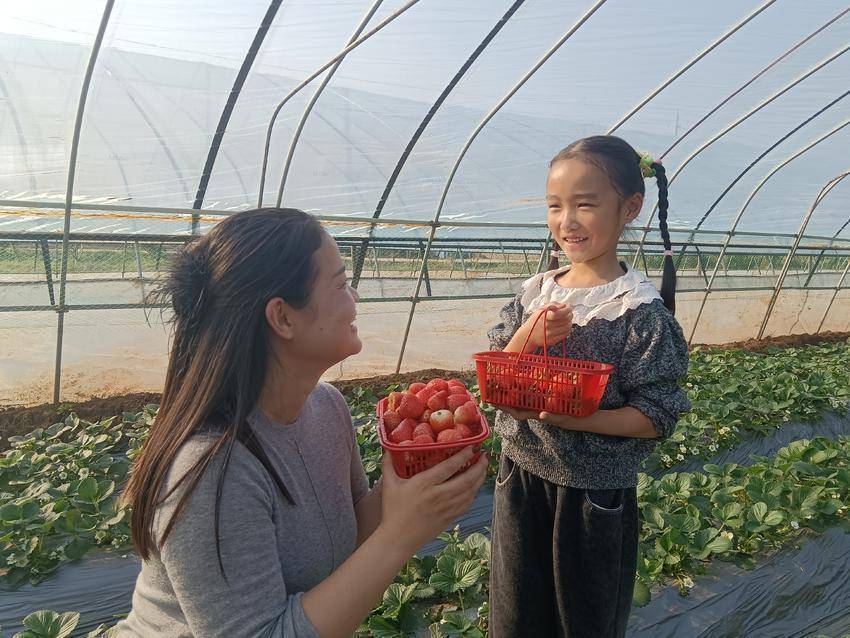 一颗颗鲜红的草莓配亿多,串起了市民的周末欢乐时光,孩子们还在家长的带领下洗草莓、串草莓、品“草莓串”,荡起木秋千,玩起滑滑梯,尽享难得的亲子时光。这抹秋冬里的“甜蜜经济”,也撑起了种植户的致富梦想,不仅让乡村田园更具吸引力,更成为当地乡村振兴路上的一道亮丽风景线。