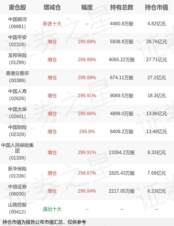 本站消息小散配资,10月28日广发基金旗下罗国庆 曹世宇管理的广发中证港股通非银行金融主题交易型开放式指数基金公布三季报,近1年净值增长率36.67%。与上一季度相比,该基金前十大重仓股新增中国银河;并对中国平安增仓4453.5万股,为该基金第一大重仓股;山高控股等退出前十大重仓股;详细数据如下: